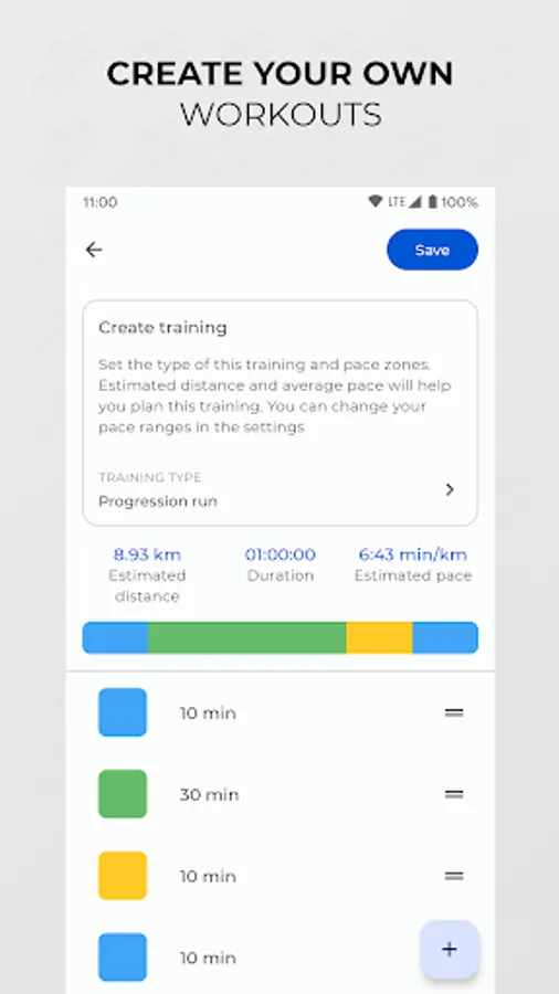 Quickly create custom workouts (Intervals, Progressive Runs etc.) to diversify your training schedule.