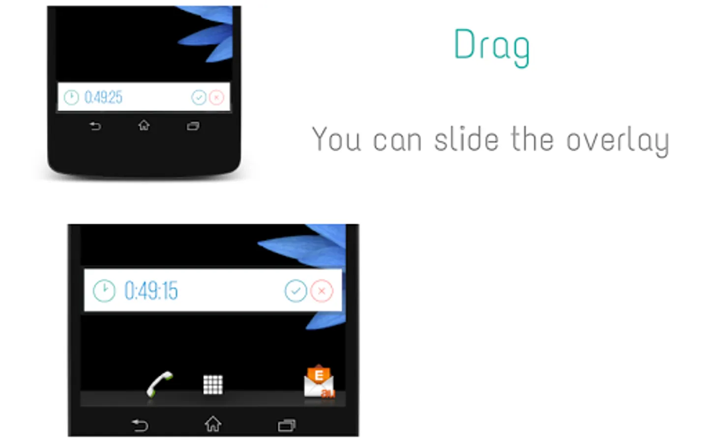 The app window will close and start Overlay show when you tap OVER LAY button or back key.
