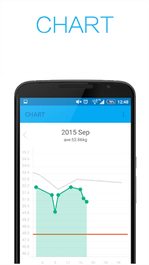 You can see your progress from the previous month in graph form, or view your weight gain or loss in a list format, all the while checking how much you have left to go until you hit your goals.