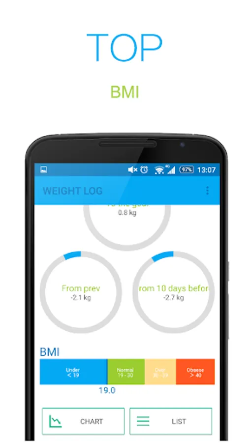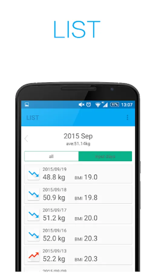 You only have to input your weight to be able to see graphs and lists charting increases or decreases since your last input.