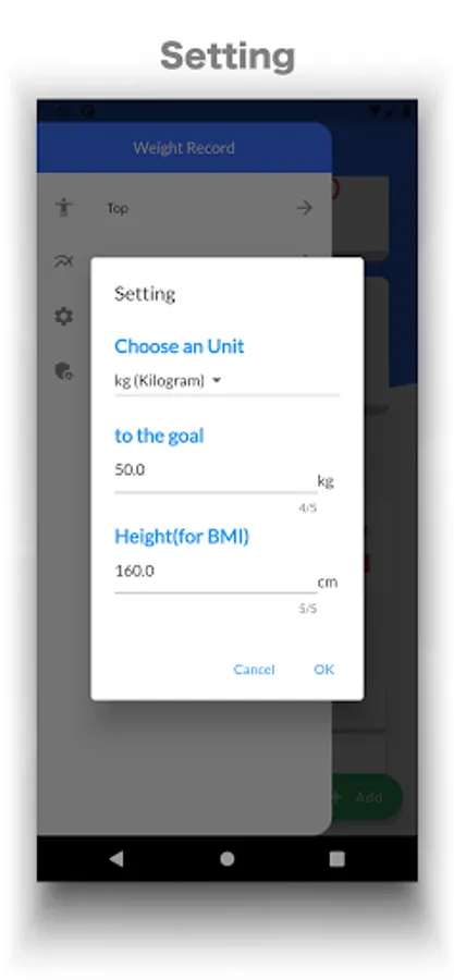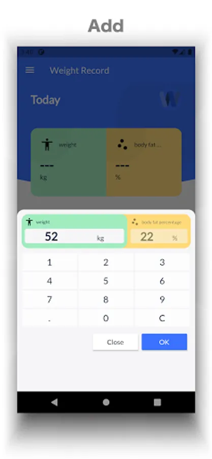 With WeightRecoder, all you need to do is to measure your weight daily and type in. It shows the record in a graph along with your target weight.