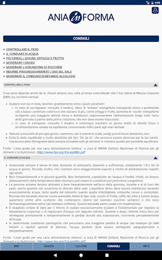 ANIAinFORMA is an application developed by ANIA Foundation and given free of charge with the aim of raising the user on some issues related to health.