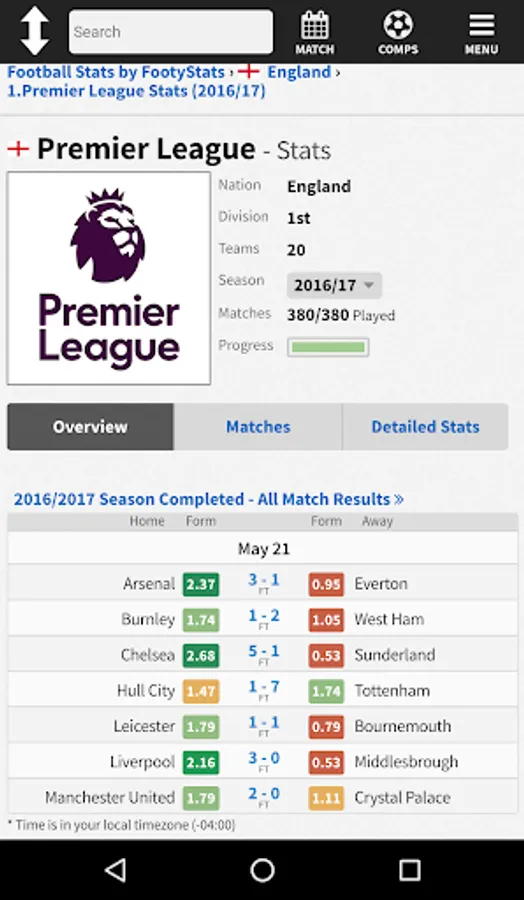 FootyStats Lite App is the Web Browser version of the FootyStats app. The browser version includes all features of the website including match search and form guides.