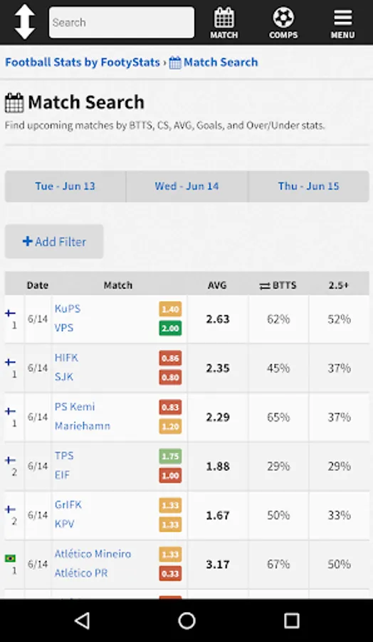 FootyStats.org is the leading soccer statistics and analytics site in the world and it is now on the Google Play Store.