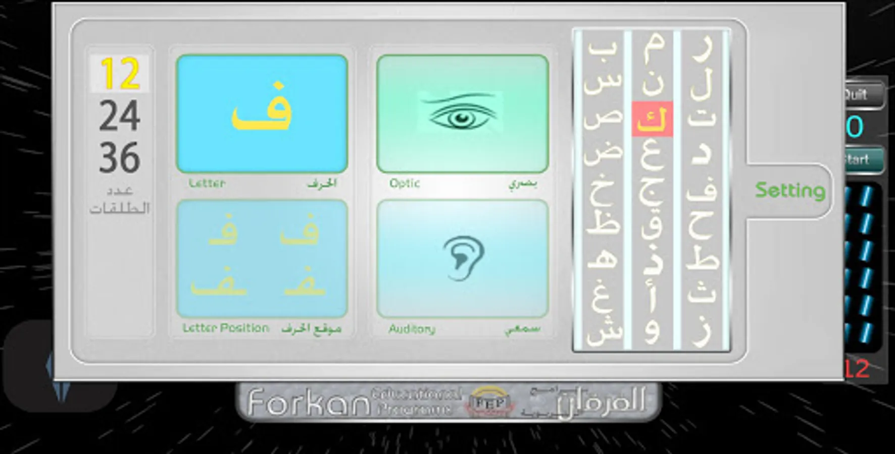 Teaching Arabic letters in a fun and useful way. The child learns the shape of the letter and his voice