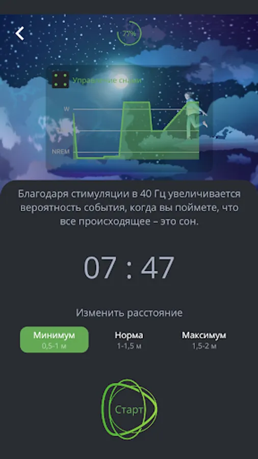 Pulses in the range of 1–20 Hz stimulate a person’s deep sleep, and in the range of 20–40 Hz, they make the dream superficial, awakening more comfortable, and also capable of causing vivid and lucid dreams, various combinations of these frequencies help to achieve the desired result.