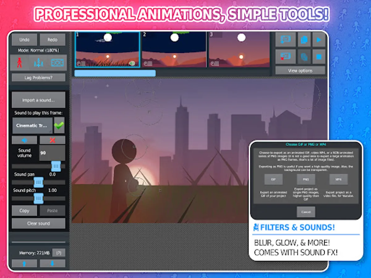 ◆ Export to GIF (or MP4 for Pro) to share your animation online.