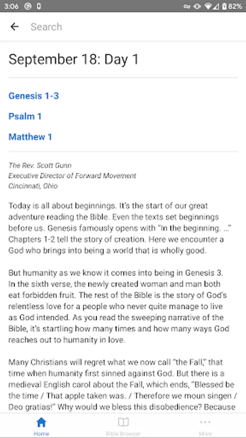The Bible Challenge Reading Plan app supports you in reading the entire Bible, Old and New Testaments over the course of a year. You’ll read three chapters of Old Testament, a chapter of New Testament, and a Psalm each day. You can choose King James Version or New Revised Standard Version. An optional in-app purchase provides access to daily meditations from The Bible Challenge (Forward Movement, 2012) to accompany your reading. You can also use the app to browse the Bible to look up your favorite passages.