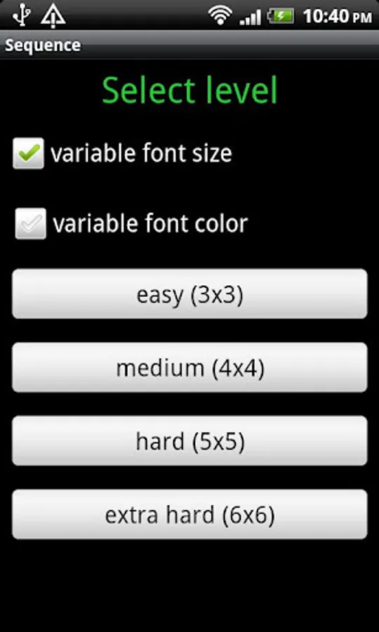 The application provides a classic psychological test of visual attention. You can choose between 4 levels of complexity.