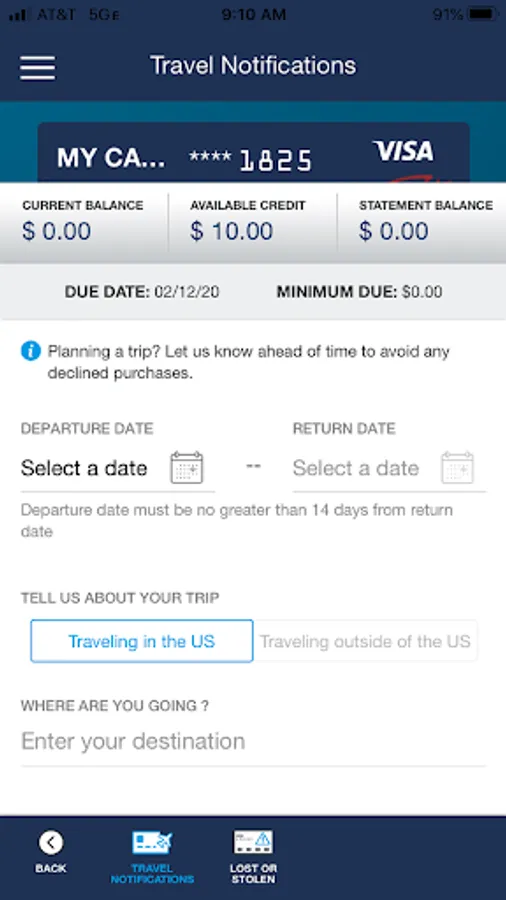 • Set travel notifications.