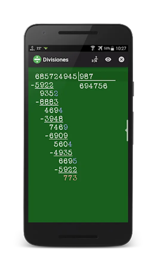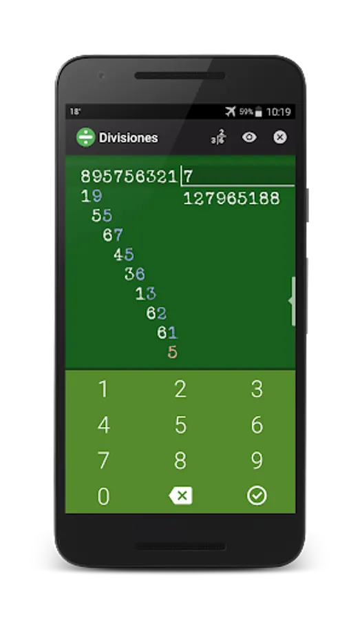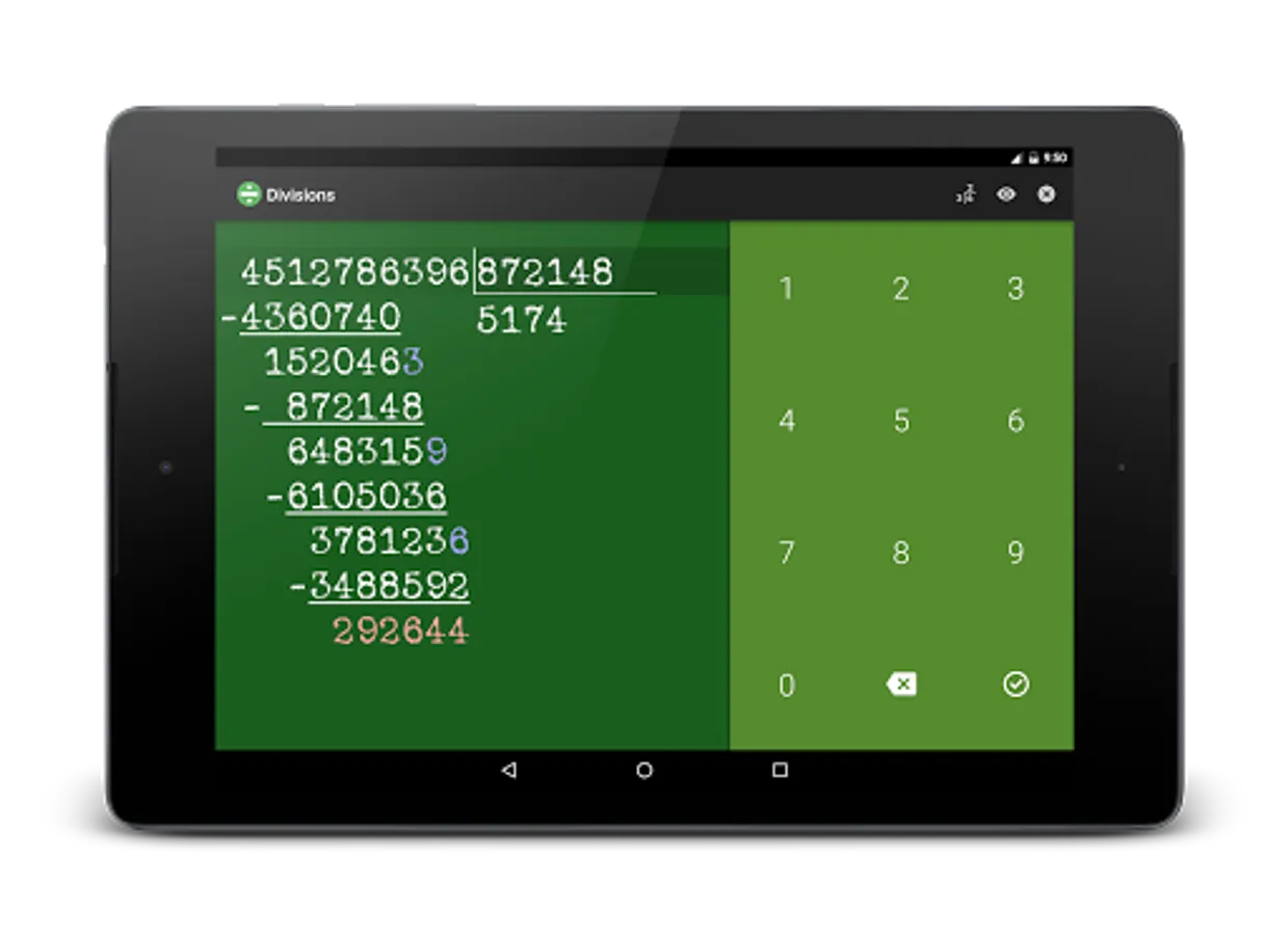 Simple calculator for divisions for schools, showing the remains of each operation.