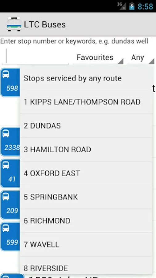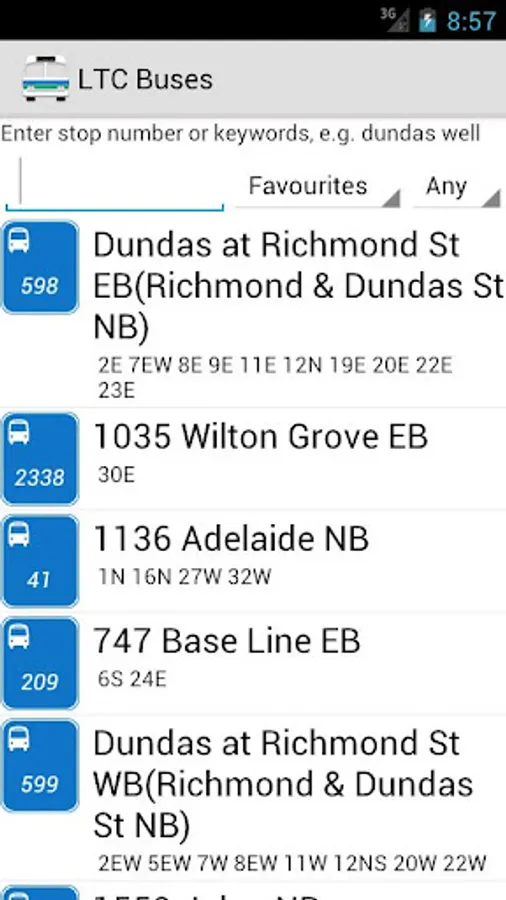 Automatically remembers your favourite stops, or shows nearby stops using GPS.