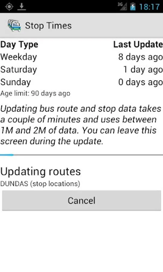 Note: with students returning the LTC WebWatch service is very slow, particularly in the late afternoon. This app depends on WebWatch, please report a problem only if WebWatch is also down. Also, please install the app (and download bus data) at some time other than late afternoon.