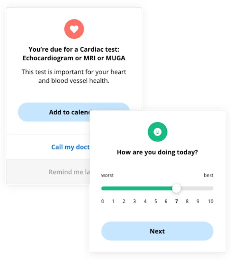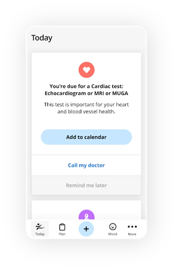 Download the app and use it with your health care team to determine the appropriate follow-up for you. Your survivorship care plan is built into the app to help you and your team.