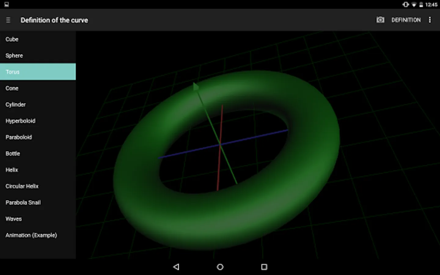 - user definable parametric surfaces: x(u, v), y(u, v) amd z(u, v)