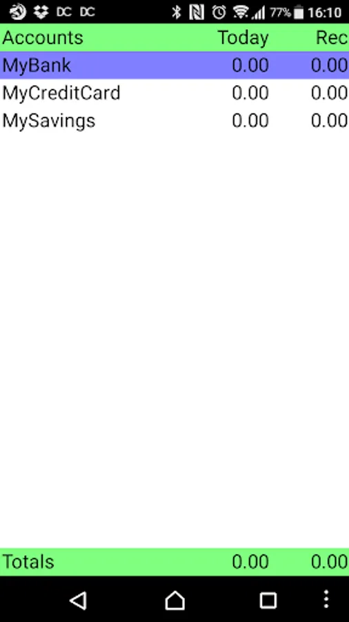 This application helps you manage your bank, credit card and savings accounts. You can record your transactions as you spend and later reconcile to your bank or credit card statements. You can allocate a category to each transaction and build up a picture of your spending habits over time. You can set up direct debits / standing orders to repeat on a fixed date each month. Simple investments such as stocks and bonds can be monitored and updated as prices change.