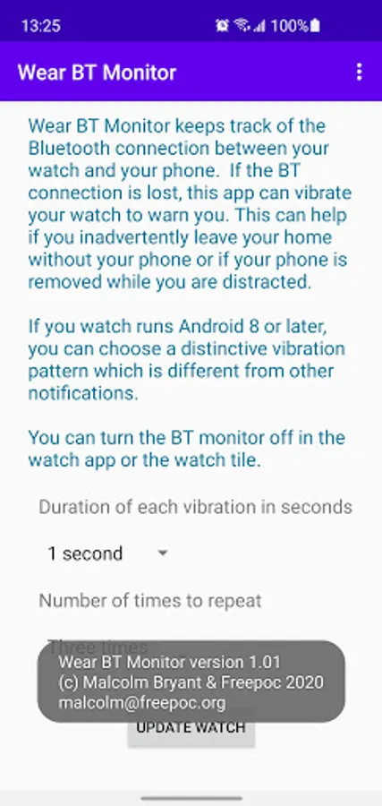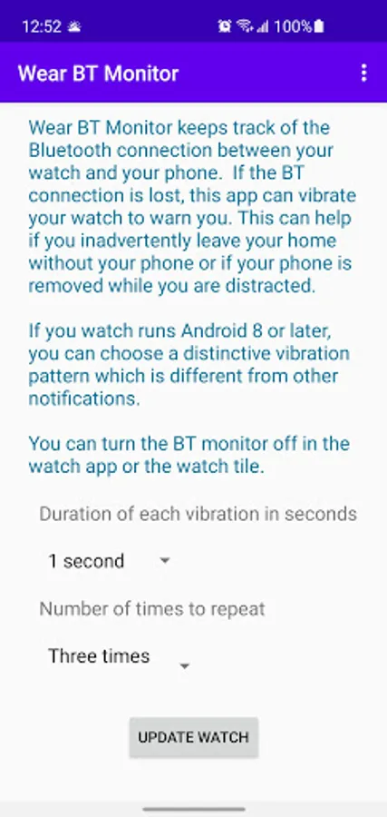 Monitors the Bluetooth connection between your Android phone and WearOS device