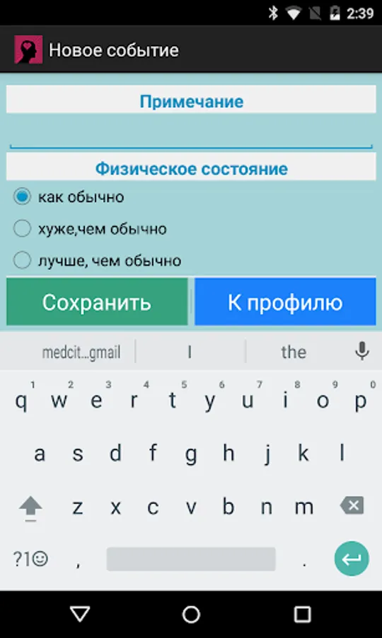 Blog formed under the individual plan and rehabilitation tasks. If necessary, the blog can be extended to more data required: blood glucose, blood pressure, weight, temperature, and other.