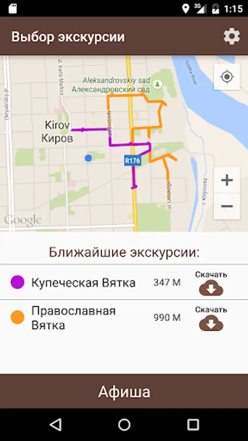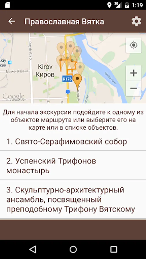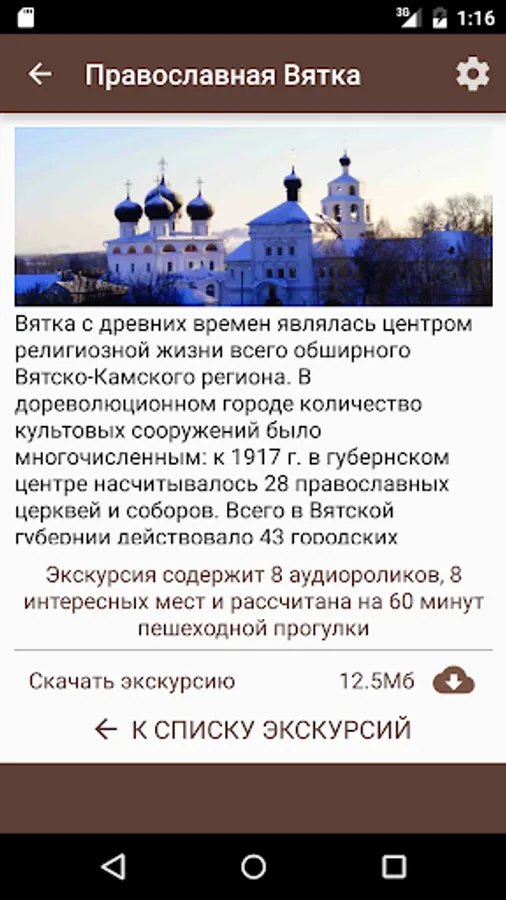 Legends of the Old Vyatka - is an electronic guide to cultural attractions in the city of Kirov. The application allows you to walk on trails, compiled by professional tour guides. Each route describes a separate topic, for example, you can visit the Orthodox churches of the city, or plunge into the world of pre-revolutionary merchant.