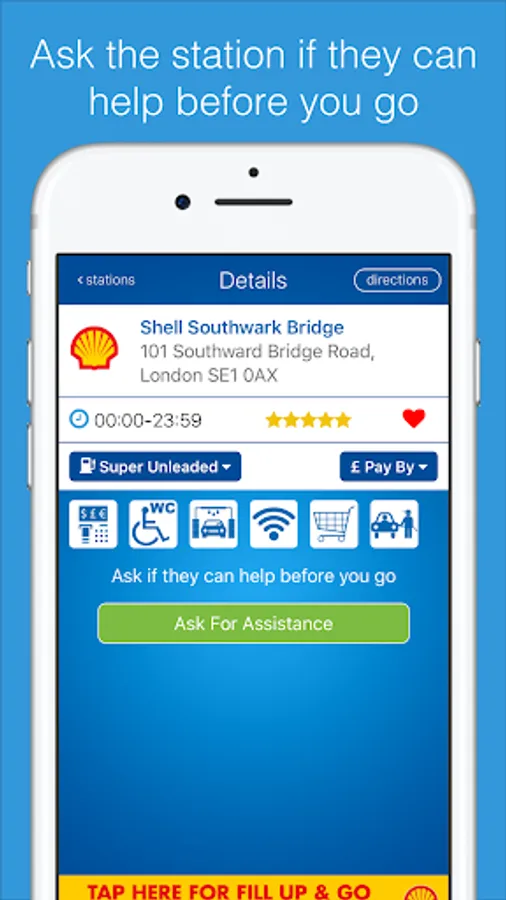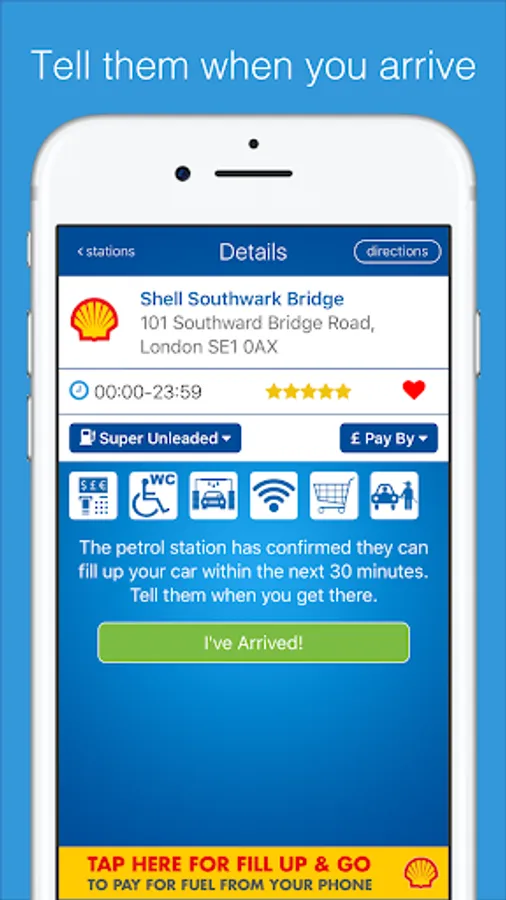 Tells the petrol station you have arrived and they can respond by letting you know how long they will be