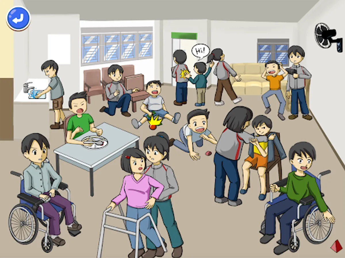"Find all social behaviors" is a "simplified version of social stories", users can learn to control emotions and improve social cognition in an easy way; there are three scenarios including: day center, sheltered workshop, dormitory, all of which are daily students It is expected that the students can make appropriate behavioral expressions in different situations.