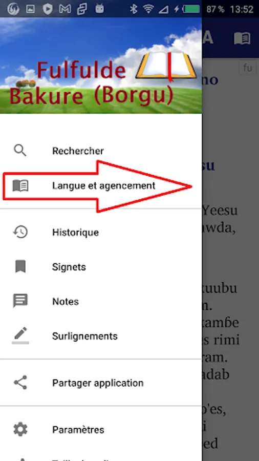 • Give your phone permission to download the audio files for the New Testament texts (availabel for NTs in Fulfulde Bakuure, French, English, Arabic). Once downloaded, the audio files will remain on your device for further use in offline mode.