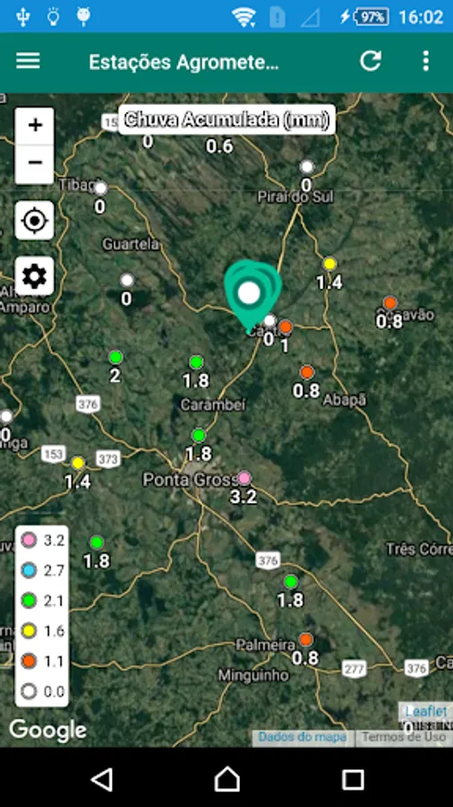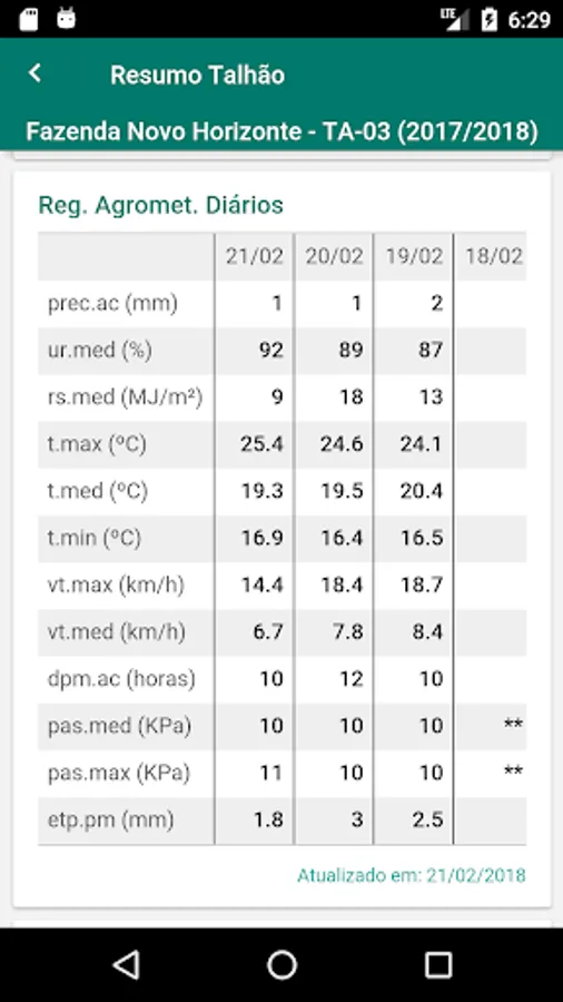 • Visualization of agrometeorological records in real time, from 53 automatic agrometeorological stations belonging to Fundação ABC;