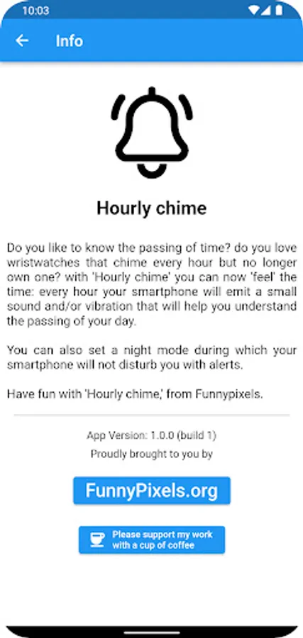 Do you like to know the passing of time? Do you love wristwatches that chime every hour but no longer own one? with "Hourly chime" you can now "feel the time": every hour your smartphone will emit a small sound and/or vibration that will help you understand the passing of your day.
