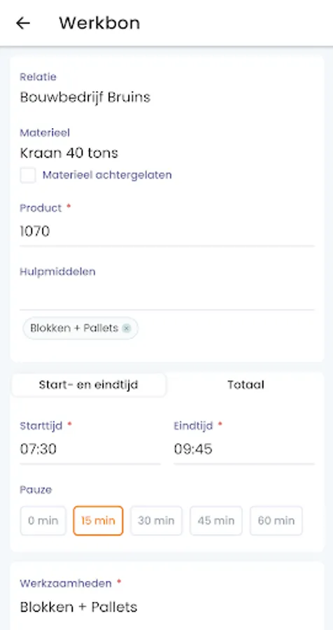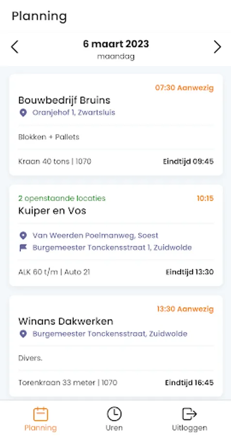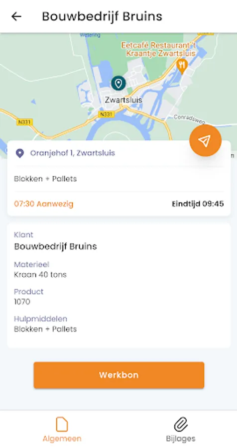 Mertis is the software for planning crane rental and transport. With the app, employees can access the schedule and create digital work orders. Every employee receives their schedule for the following working day through push notifications and can submit working hours within the app. A daily schedule is available which is divided into relevant projects. All relevant information about the specific task and customer is included in a project, on the basis of which a work order is created which the employee can then have digitally signed