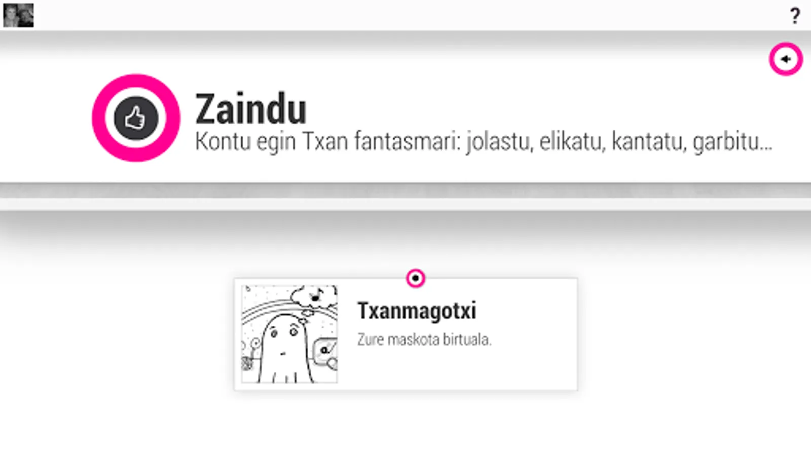 Download, play and share! Did you enjoy the wonderful ghost and Karmentxus downs. Txanmagotxi take care of your virtual pet, play the wonderful hiding and alarm, from the wonderful maze, watch autotxokeetan, complete puzzles, burst out laughing in the mirror, take a picture and send it to your friends!