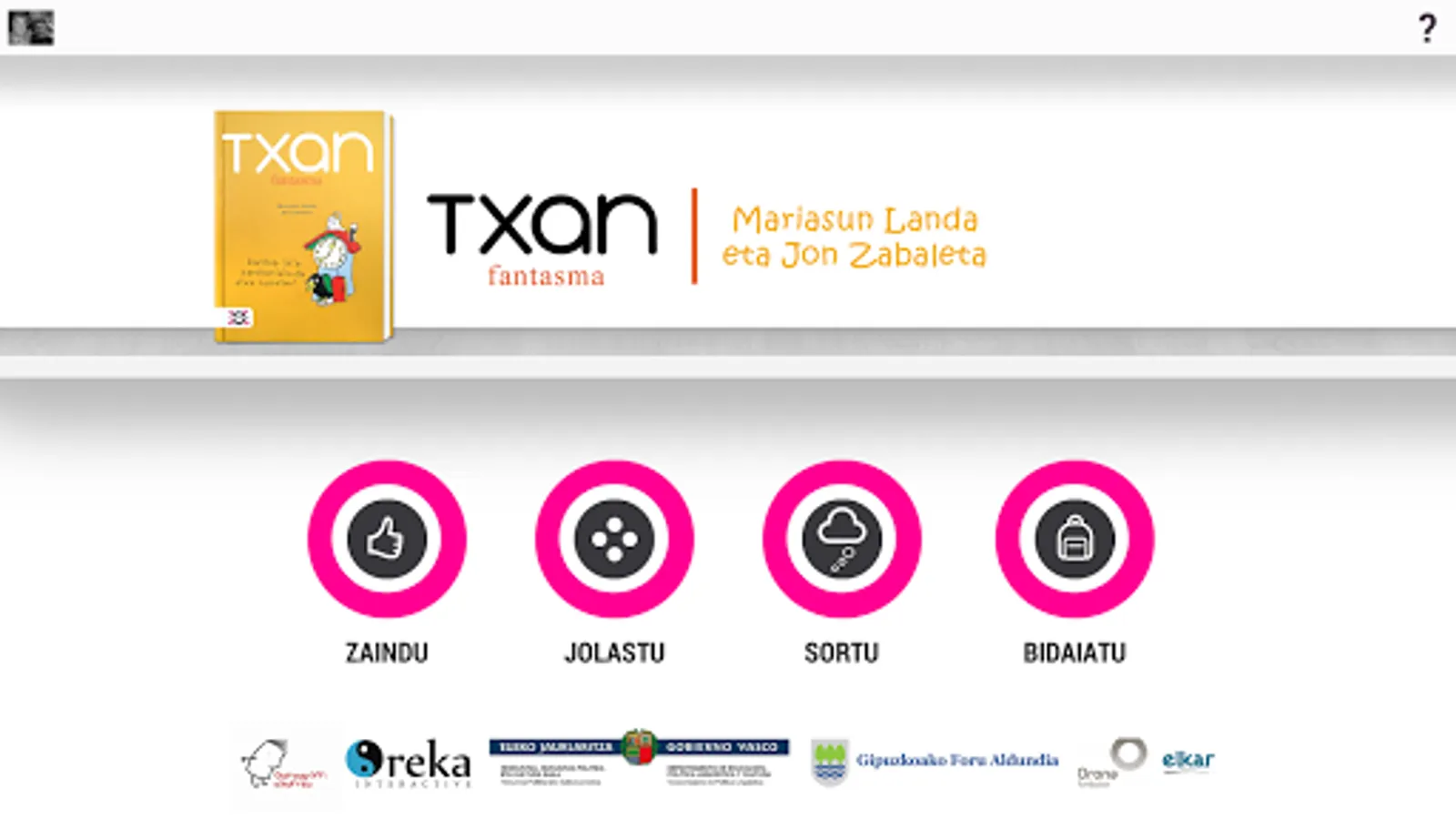 Mariasun Landa and Jon Zabaleta wonderful ghost of the book this application. Based on the classic children's literature in the Basque language app!