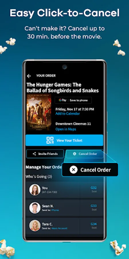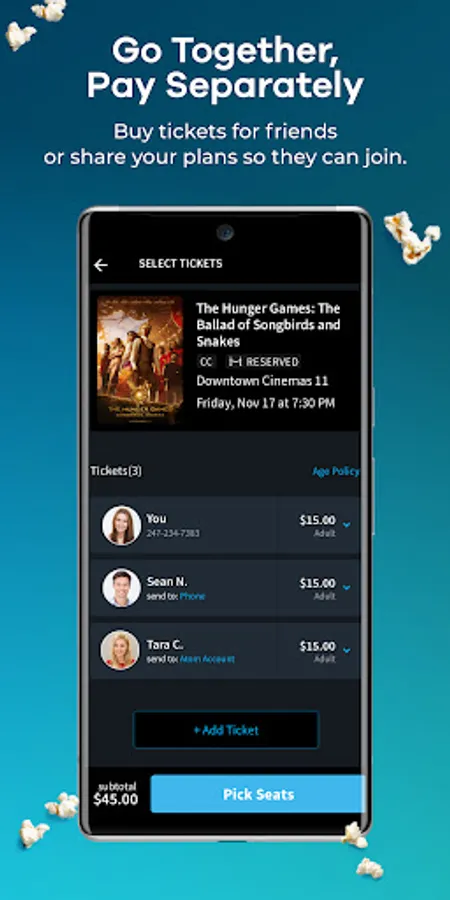 • PLAN A MOVIE NIGHT: Invite friends, pay separately and send your seat assignment with a few taps. No more group texts.