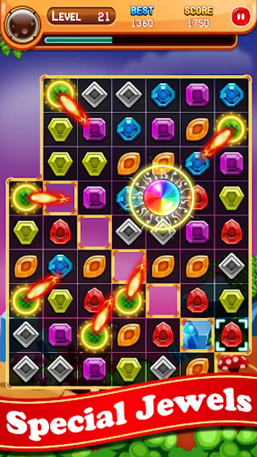 ★ Match 3 or more jewels of the same color in a row vertically or horizontally
