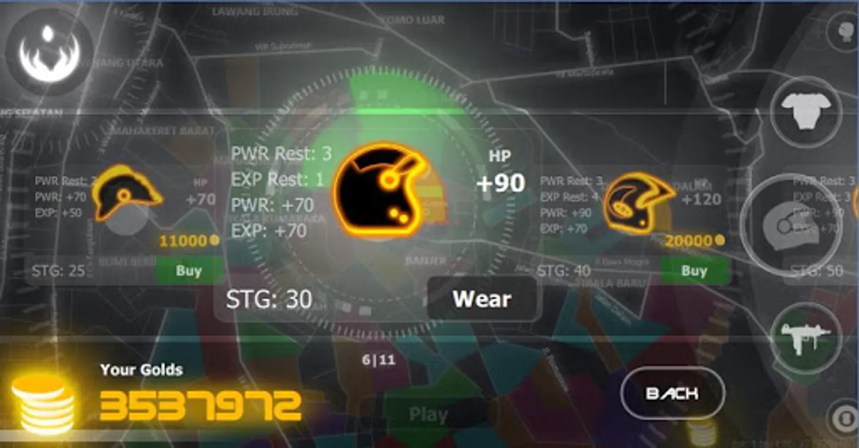 (Note: weapons, armor, accessory, and special ability will be available based on the character's level)