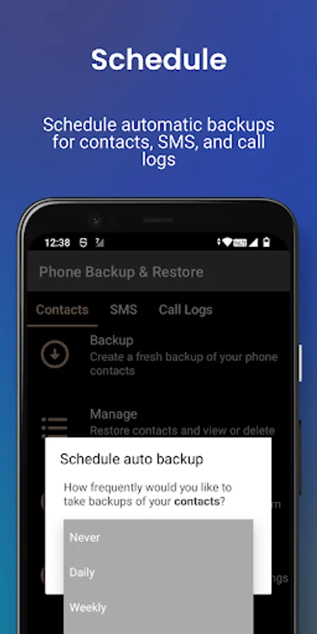 Protect and safeguard your valuable contacts, SMS, and call logs with Backup Master. Our app provides you with a reliable solution to create backups and ensure the safety of your important data. With an intuitive interface and powerful features, Backup Master guarantees that your essential information is never lost.