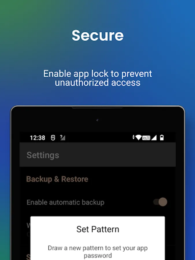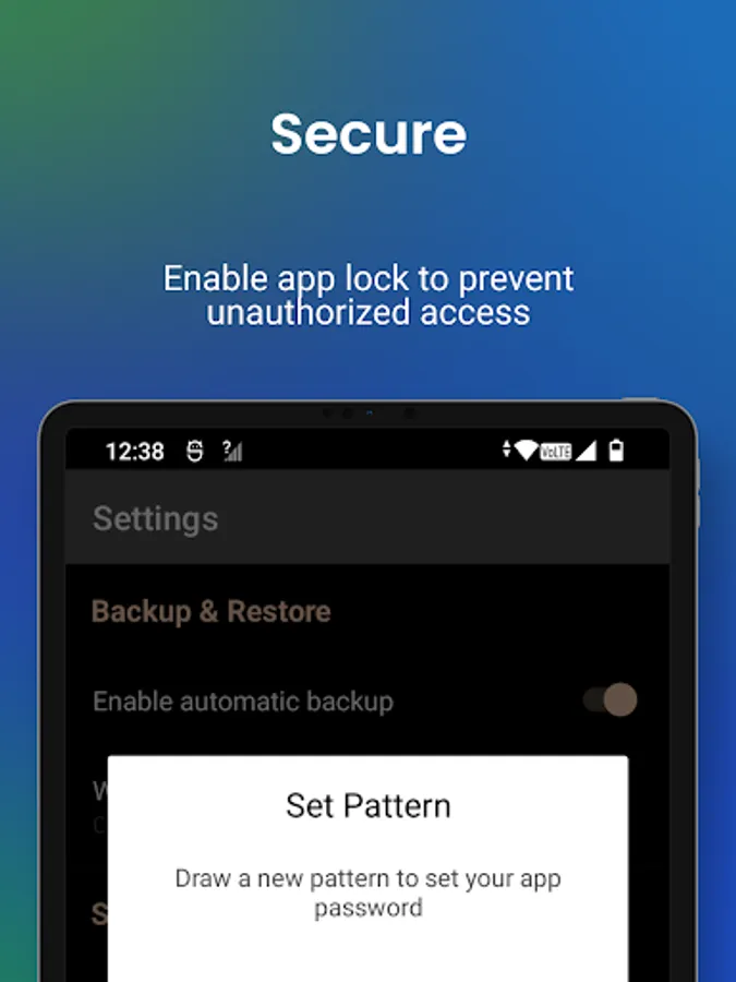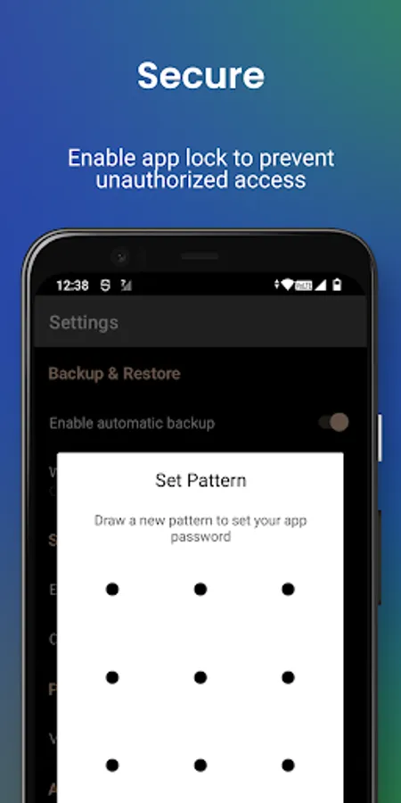 5. App Lock: Secure your Backup Master app with a pattern lock, adding an extra layer of protection to prevent unauthorized access and safeguard your sensitive information.