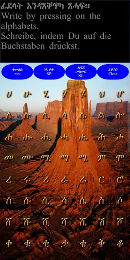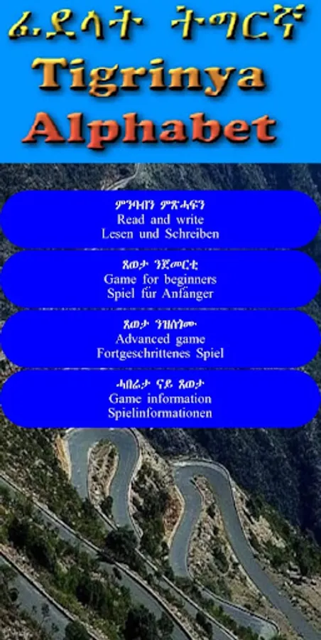 Mit der GameLearnTigrinyaAlphabet App learnst du auf spielerische Weise das Schreiben und Lesen des Tigrinya-Alphabets. Du wirst Spaß beim Spielen haben, aber gleichzeitig wirst du dir die Tigrinya-Buchstaben einprägen und lernen, wie sie aussehen und wie man sie ausspricht. Außerdem lernst du, wie man Wörter bildet und diese dann zu einem Satz zusammenfügt.