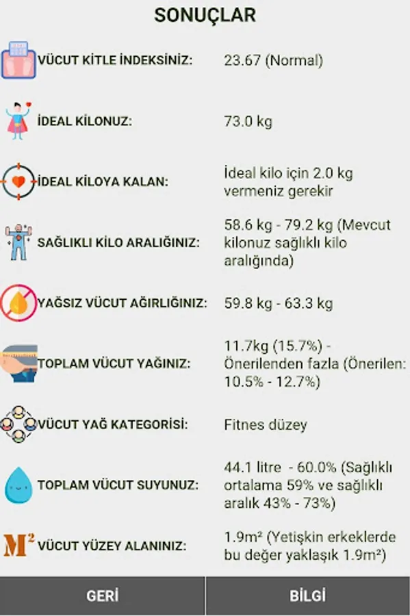 İdeal Kilo Hesaplama - Vücut K Screenshots