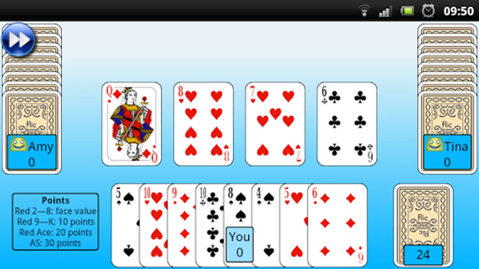 - Red 9-king: 10 points each