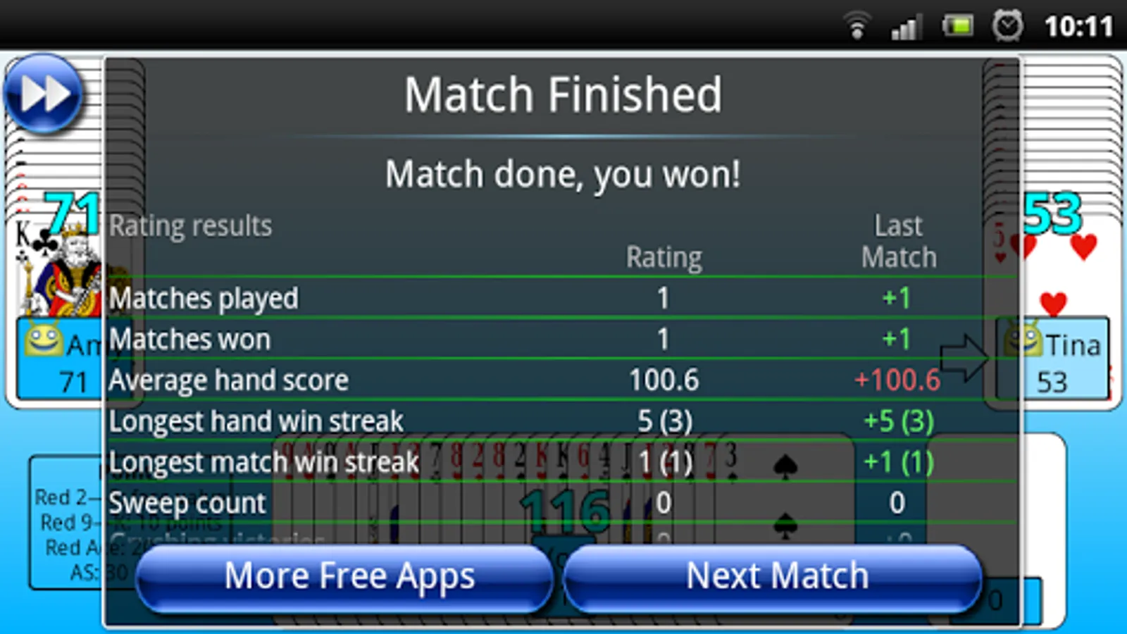 The match ends when a player reaches 1000 points. The player with the most points wins the match.