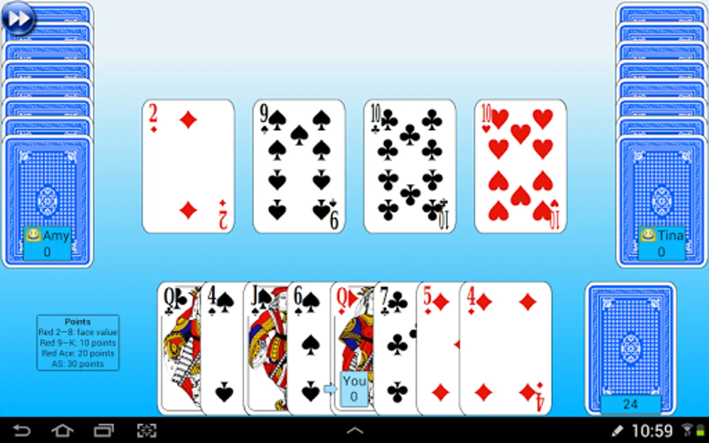 - Black 10,J,Q,K: 10 points each