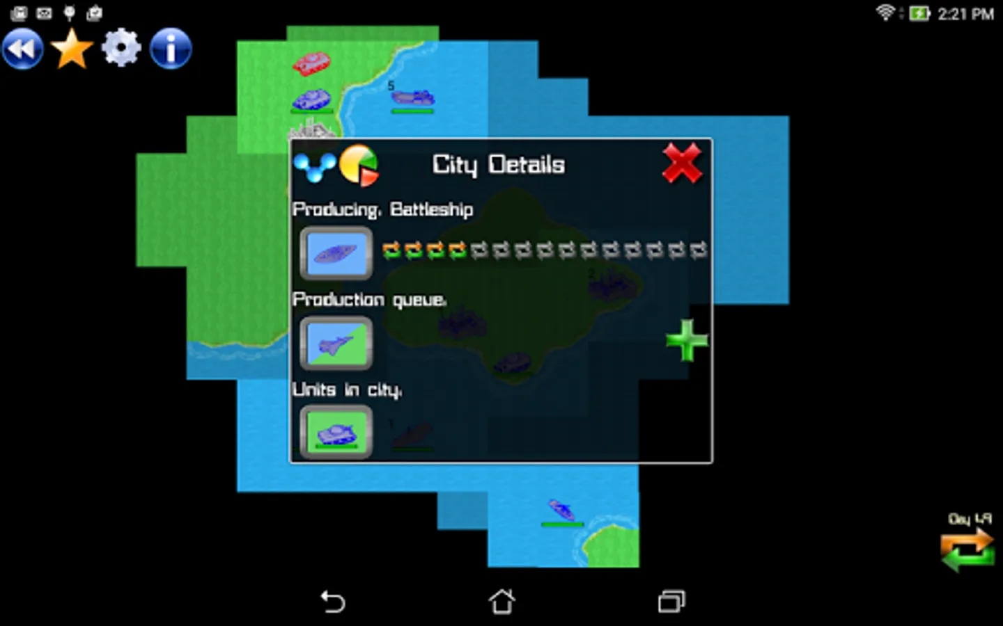 Build tanks, air-planes, ships and submarines to conquer all the cities you encounter. You will need them to expand your army faster. Your final goal: the annihilation of the red army.