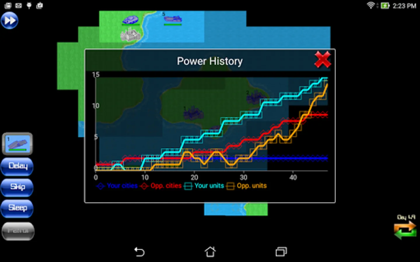This game is also known as 'Stragic Conquest'. Empire is the ancestor of all turn-based strategy war games. It offers world discovery, fog-of-war (you can only see enemies directly adjacent to your units and cities), intense combat and great strategic opportunities.