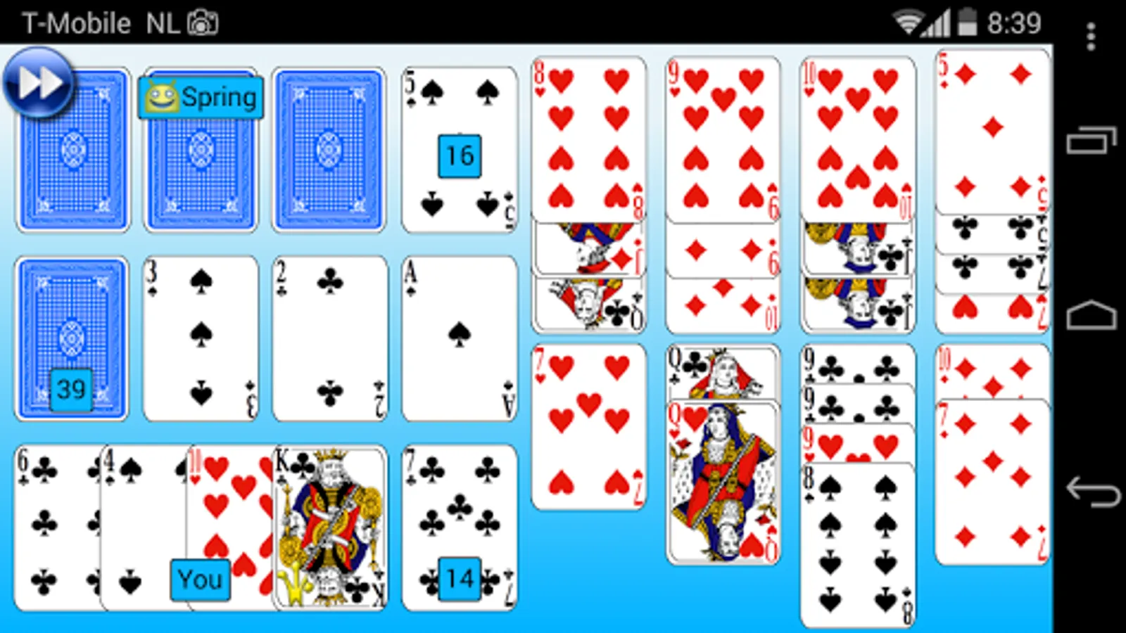 - Play the top card from one of your side stacks onto one of the center stacks.