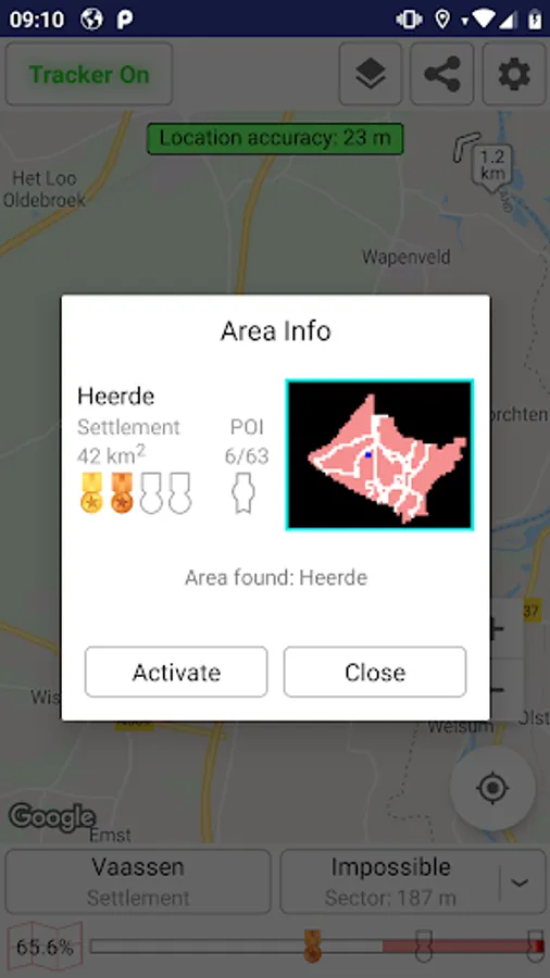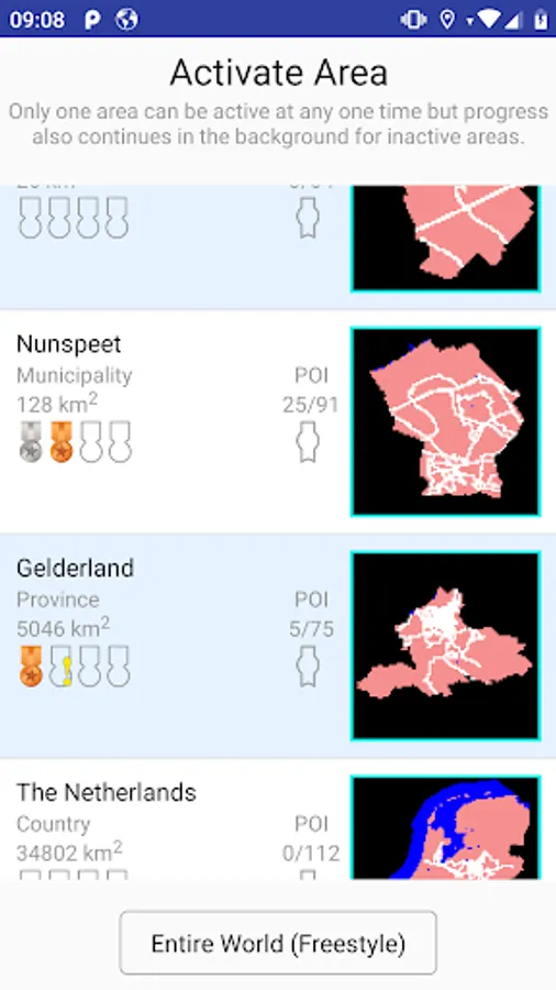 Areas contain Points-Of-Interest that can be uncovered by visiting them. Where sectors can be collected simply by having the tracker running in the background, POI must be collected actively.