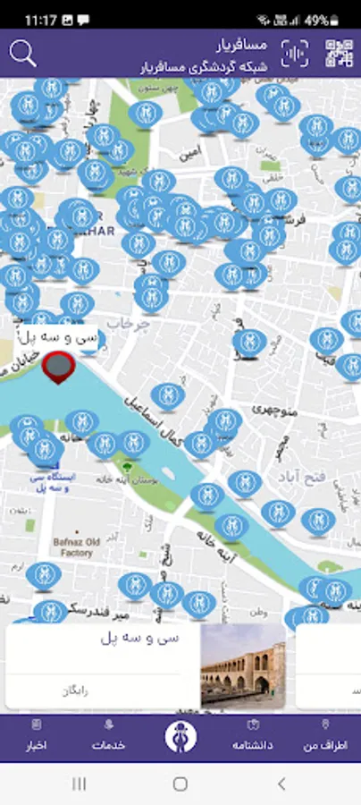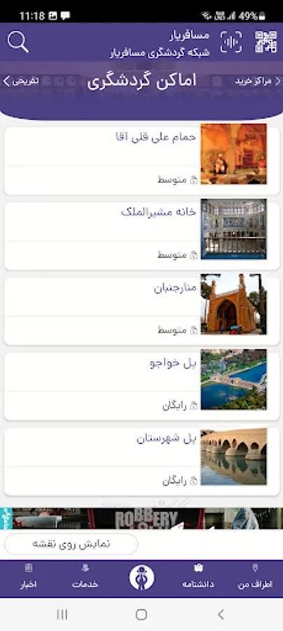 3. The ability to scan barcodes containing traffic signs and banners installed during the New Year in different places, tourism, home, street, integrated way between the road and in the province of Isfahan and get listed at the top of its content ( for example, if the local read: "list of Places to stay" and below it was a barcode, scan the barcode on the list will be transferred Places to stay in software Msafryar)