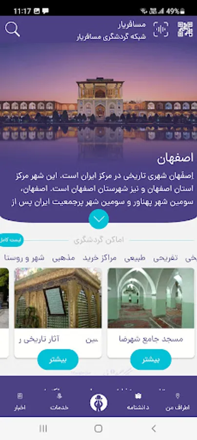 Network tourism passenger side, as host of services for e-tourism in the province (from headquarters to coordinate travel services Isfahan Province), application Msafryar under the aegis of the parent company development expertise and Tourism with unique features available to tourists, the province put Is.