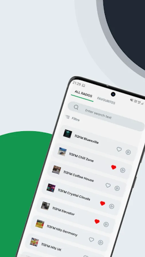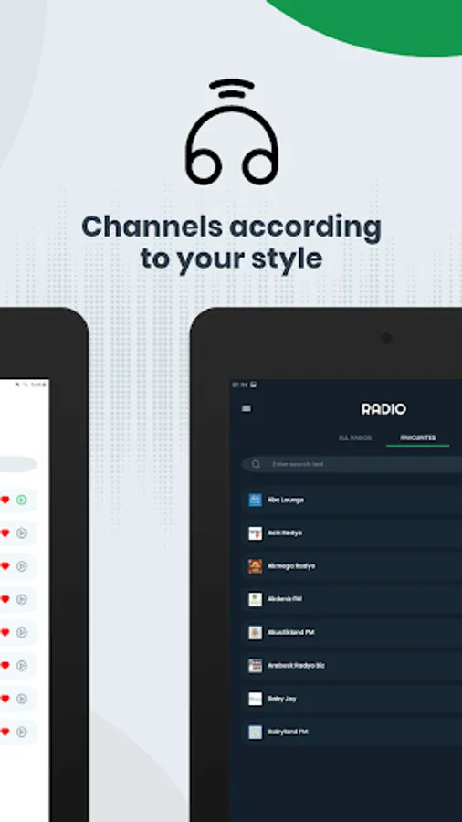 You can browse through carefully selected radios in the category you want from Arabeskt to classical music, jazz to sports news; If you wish, you can easily access the desired radio by adding your name to your favorites.
