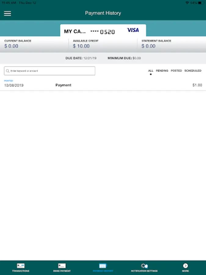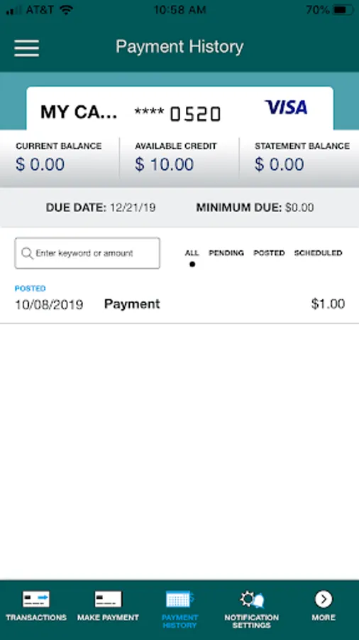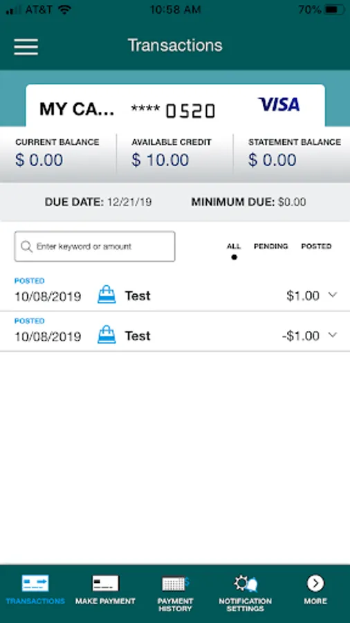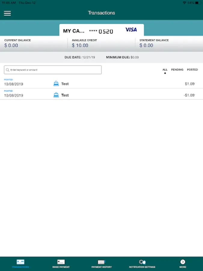 • View recent and pending transactions.