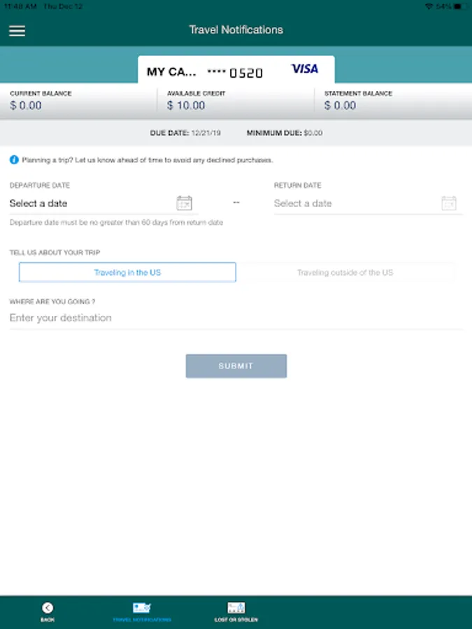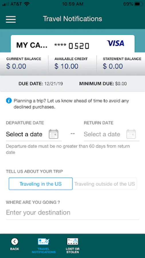 • Set travel notifications.